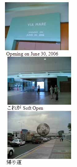 その5月21日は幸いにも曇り空という好天(?)に恵まれエドサ通り沿いから、まだ人影が疎らな午前10時半頃のモール全景を撮る事が出来ました。新聞の記事では開店前からぞくぞくと人が集まって…とありましたが。