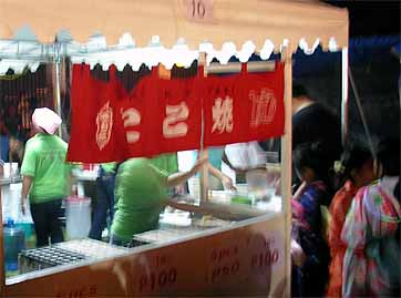 今年は5時からと去年よりも開始時間が遅くなったような気がします。でもなるべく早めに行ってテーブル席など確保しておいた方がいいのかも。エド達が着いた5時過ぎだと数少ないテーブルなどはもうほとんど取られていて空いていません。それにどのお店も長蛇の列。こっちのお店でおでん。別のお店で焼き鳥、それにたこ焼きなんて買ったら計1時間は列に並びそう!?一番人気のたこ焼きはいつも長蛇の列だったので結局諦めました…。
