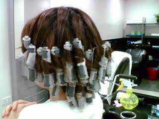 私は日本でもパーマをかけた経験がなく、パーマ自体あまりその気ではなかったのですが、ちょっと覗くつもりで入った美容院でついつい話が盛り上がり、そのままパーマをかけることとなりました。ロッドは一種類しかありません。もっと太いほうがいいのでは・・・と思っていたのですが、なにぶん日本でもパーマの経験がないので、「大丈夫」と言うスタイリストさんの言葉を信じてお任せすることに。これまで行っていた美容院よりは、信頼の置けそうな(?)チェーン店だし。